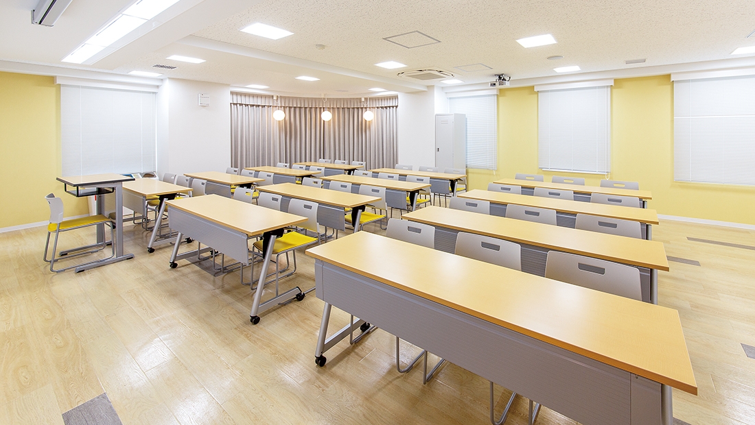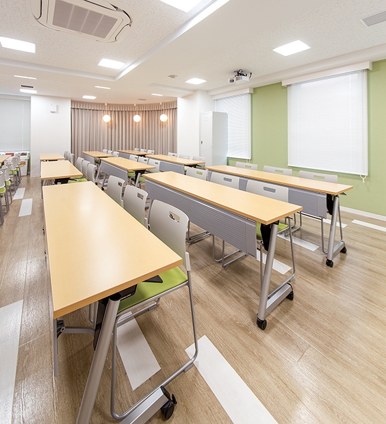 5階 教室/イス:ペン、テーブル:フリプト、教卓:S-30、ロッカー、ゴミ箱、時計:KX236W
