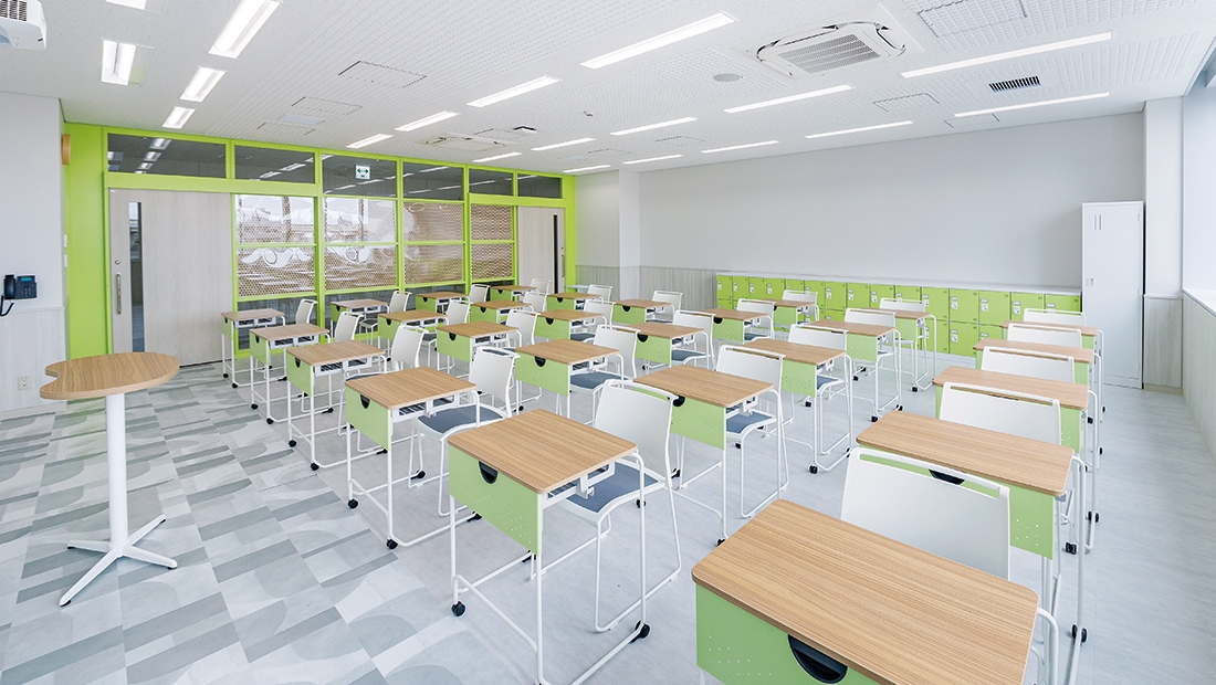 普通教室/イス:ティーポ特注品、デスク:タクト特注品、教卓、ロッカー