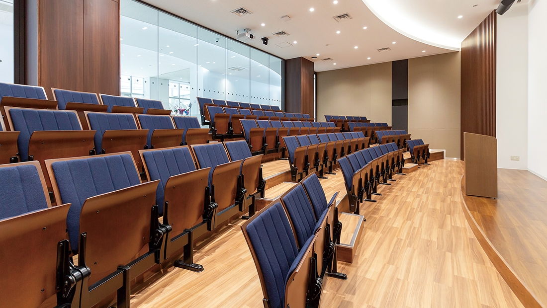 新校舎には可動式間仕切りを移動することで、4つのクラスと共同で学ぶことが可能な四室一体型教室や、授業やプレゼンの教室となるHALL-0(ホールゼロ)などが設置されています。校舎全体が、学びの場、探求の場、創造の場となり、校内のいたる所で学びが生まれ、学習や討論、プレゼンテーションが行える工夫が施されています。