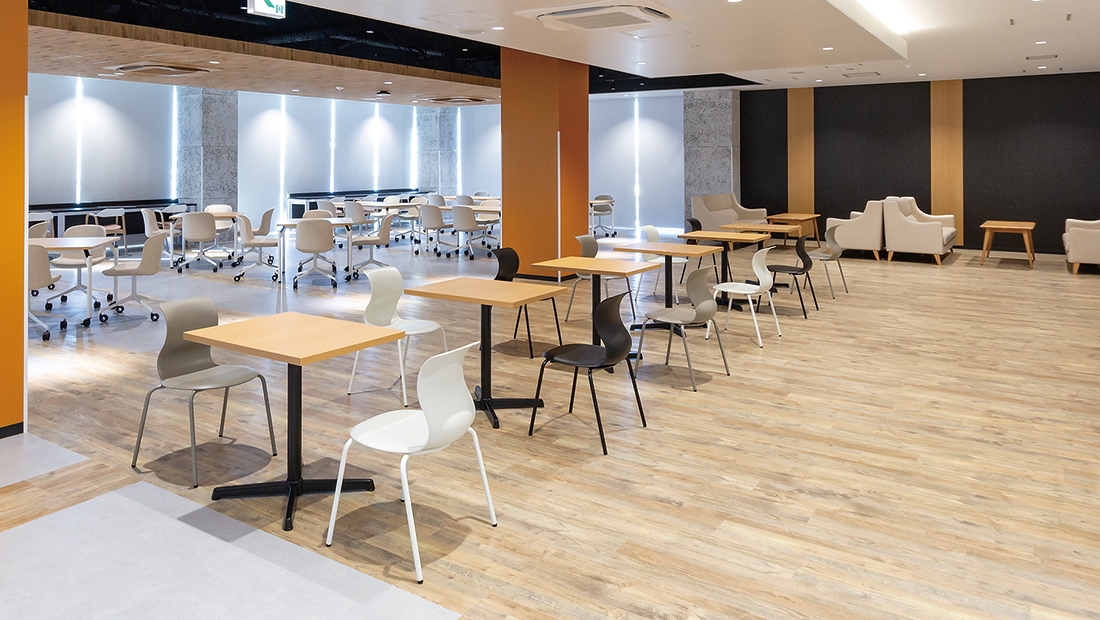 2階 コモンズ/イス、タブレット付チェア:デューン、テーブル:DTN、カウンターテーブル