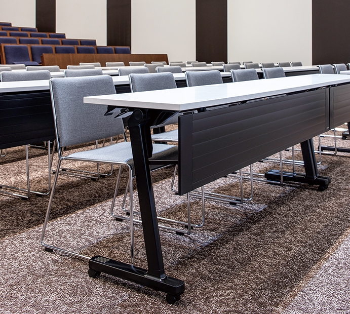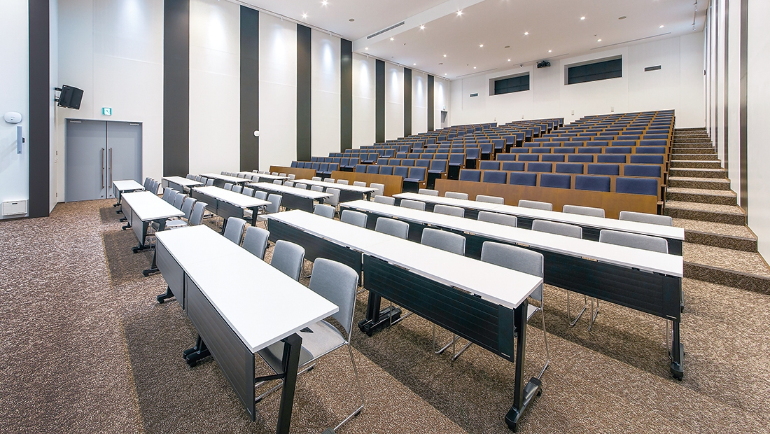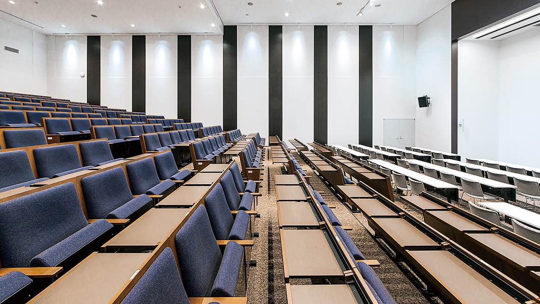 記念講堂/固定席:ATS-1561DR-BTN、可動イス:ジーン、可動テーブル:アコルサ
