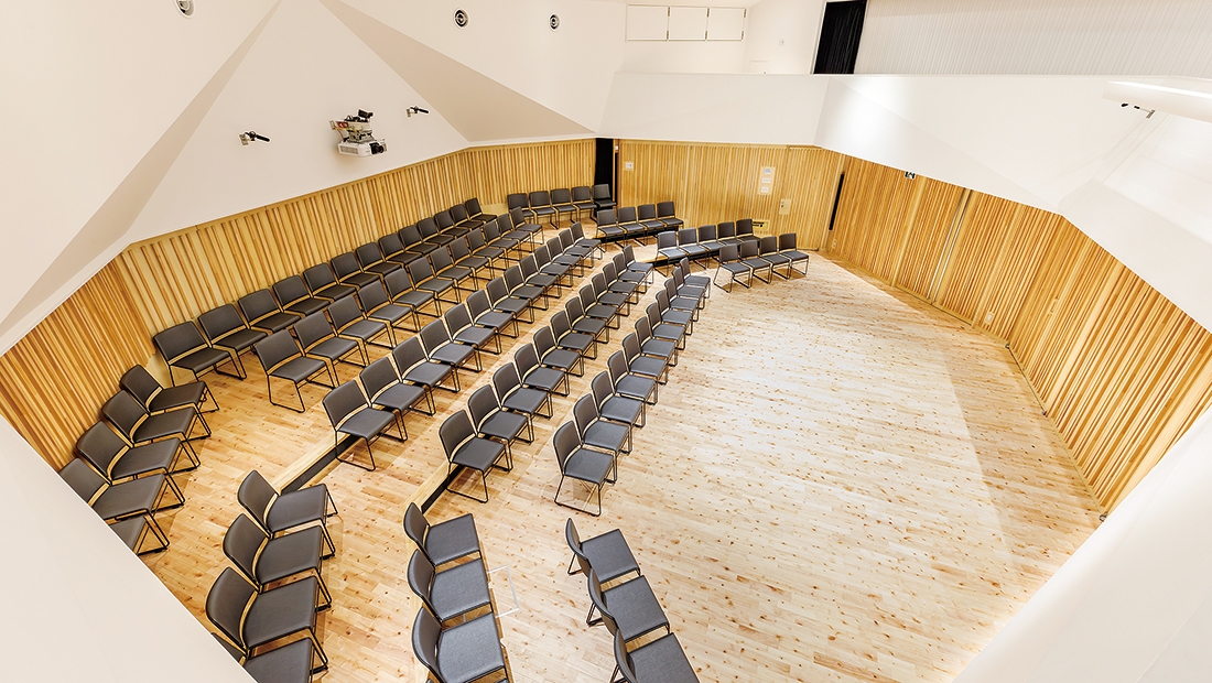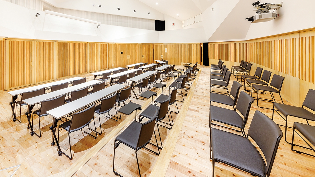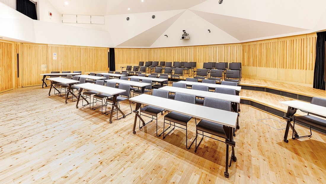 優れた音響設備を備えた「MiMi HALL」には、大型のスクリーンも兼ね備えられており、プロの演奏者によるコンサートからアットホームな演奏会まで、さまざまな形態のコンサートを開催することができます。また、テーブルや着脱可能なタブレットを使用することにより、コンサート以外の用途にも多目的に利用することができます。
