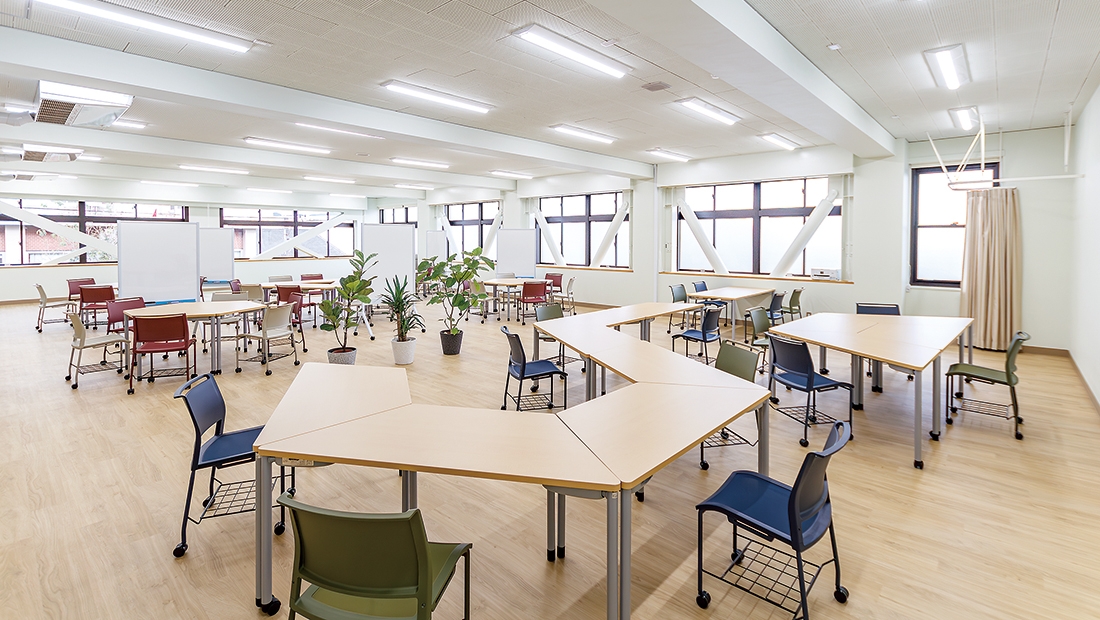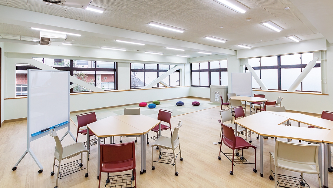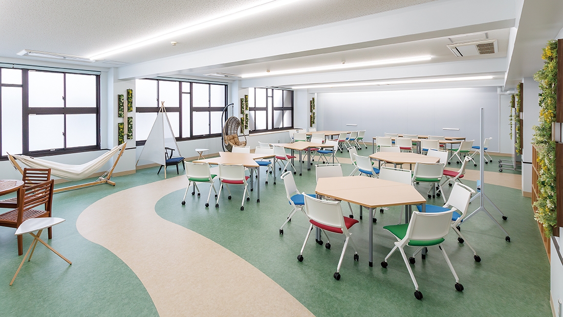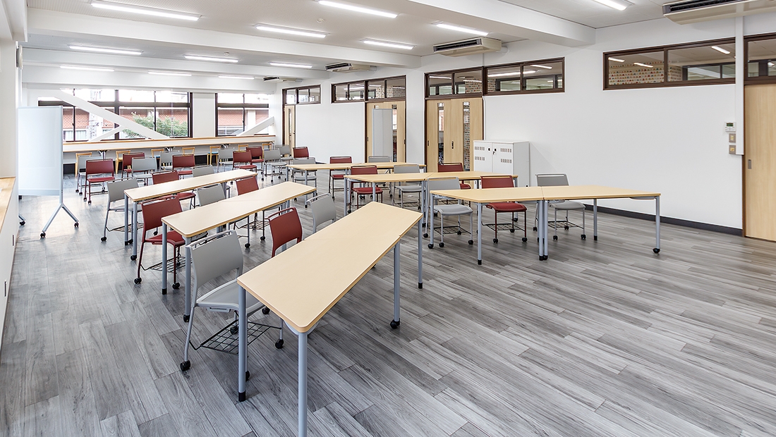 ミルトスコースの新設に伴い、授業内容に合わせてさまざまな使い方ができる特徴的な教室が整備され、生徒が授業以外の時間にも、思い思いの時間を過ごすことができる空間づくりがなされています。