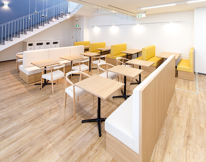食堂(カフェテリア)/イス:アイパッグ特注品、テーブル:DTN