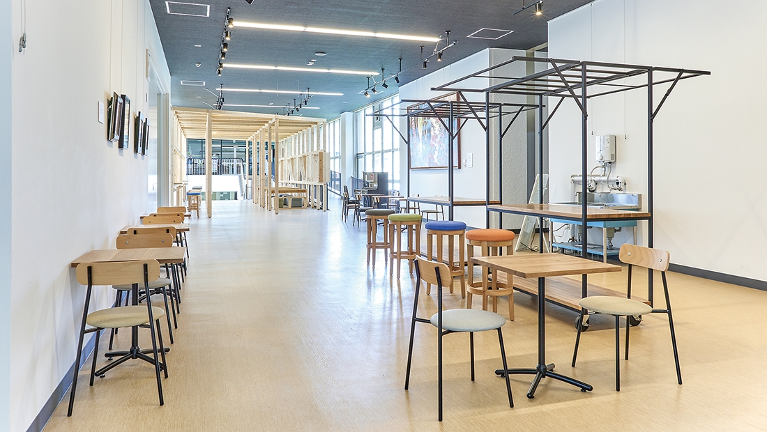 2023年に創立100周年を迎えた北海道教育大学岩見沢校で、100周年事業として、学内で活用されていない空きスペースをカフェスペースにリノベーションする「CO-RE(コレ)カフェ事業」が整備されました。