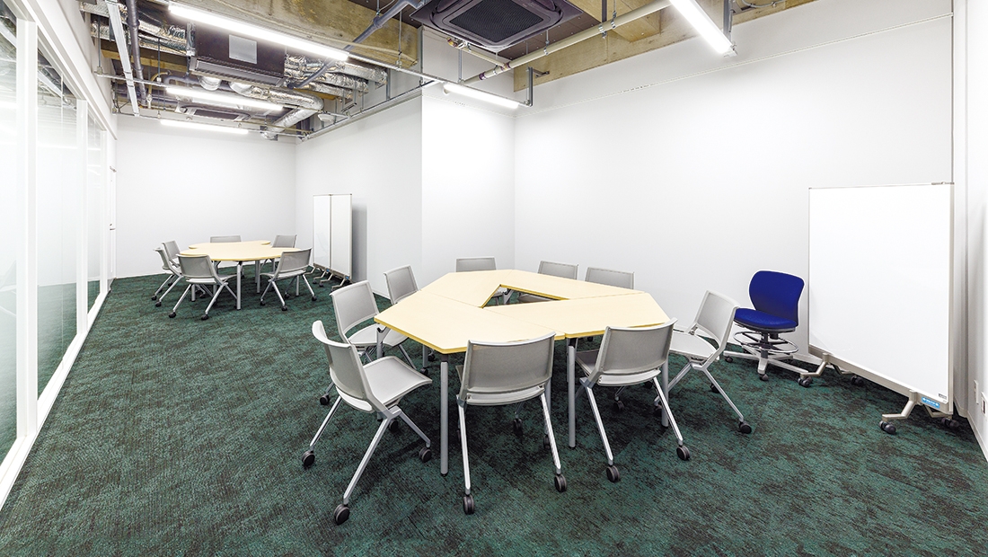 また、既存校舎である1号館の教室は、これまで図書館として利用していた建物を教室棟に改修し、最適な学習環境を実現。各教室には移動性に優れたイス・テーブルが採用され、講義とグループワークの双方ができるようになっているほか、アクティブラーニング室にはレイアウトを自在に変えられるイス・テーブルが採用され、少人数のグループワークやミーティングに活用できるようになっています。