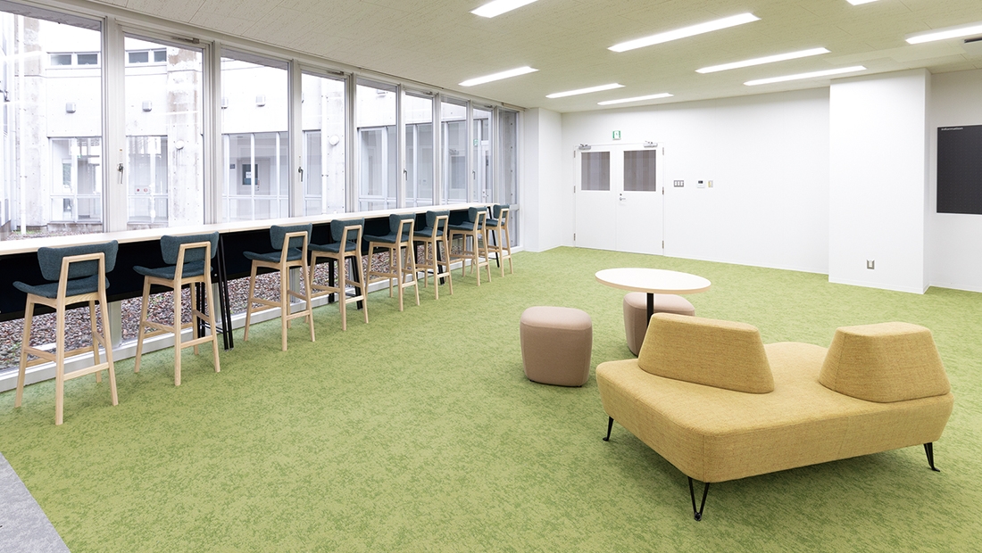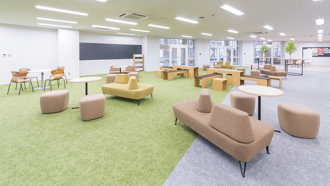 この改修は、学生の大学生活の充実を目的としており、学生の居心地の良さを重視して、自由にレイアウトを変更することができる家具で構成された学生ホールとなっています。