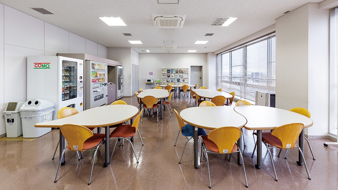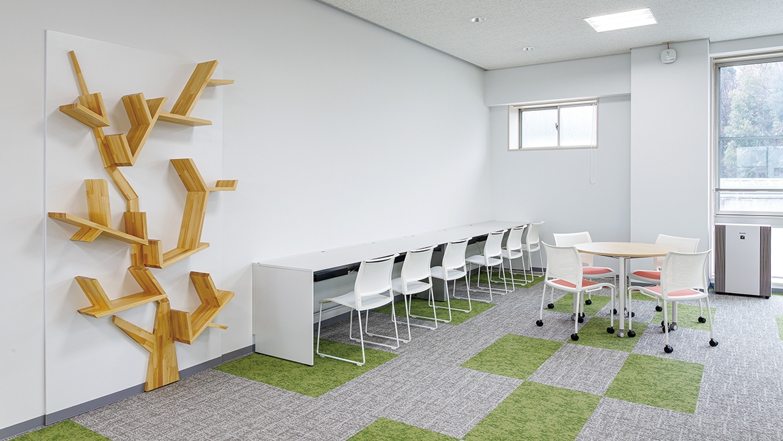 椙山女学園大学では、学生が講義前の時間に自習や食事に利用したり、イベントなどで多目的に利用できる「学生控室」が各学部ごとに設置されています。情報社会学部の学生控室では、設備の老朽化に伴い、全面的な改修が実施されました。