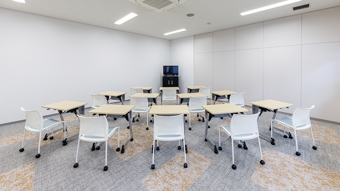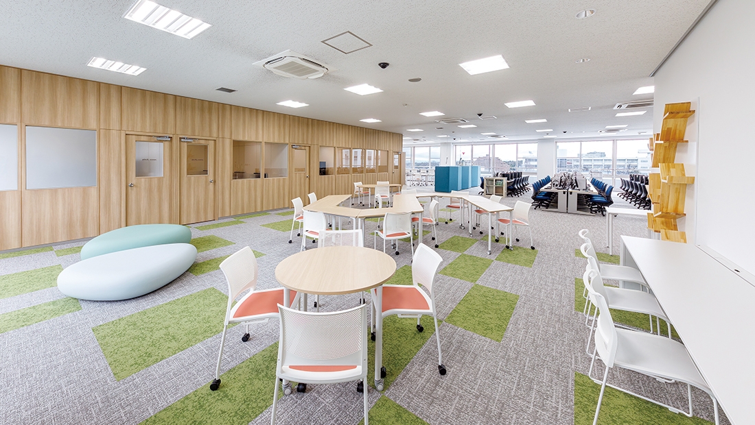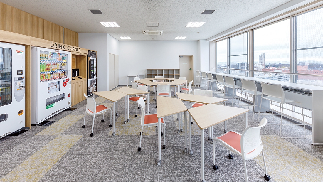 改修された学生控室は、移動性に優れたイス、テーブルが採用されており、利用用途に応じてフレキシブルにレイアウトを変更できるようになったほか、内装も一新され、学生がより使いやすい快適な空間になりました。
