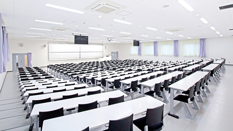 新校舎には入学定員の増加に伴い、これまでにはなかった大人数での講義も可能となる大講堂を設置。そのほか、アクティブ・ラーニングやAV・ICTに対応した高機能教室など、最新の設備を備えた充実した学習環境が整備されています。