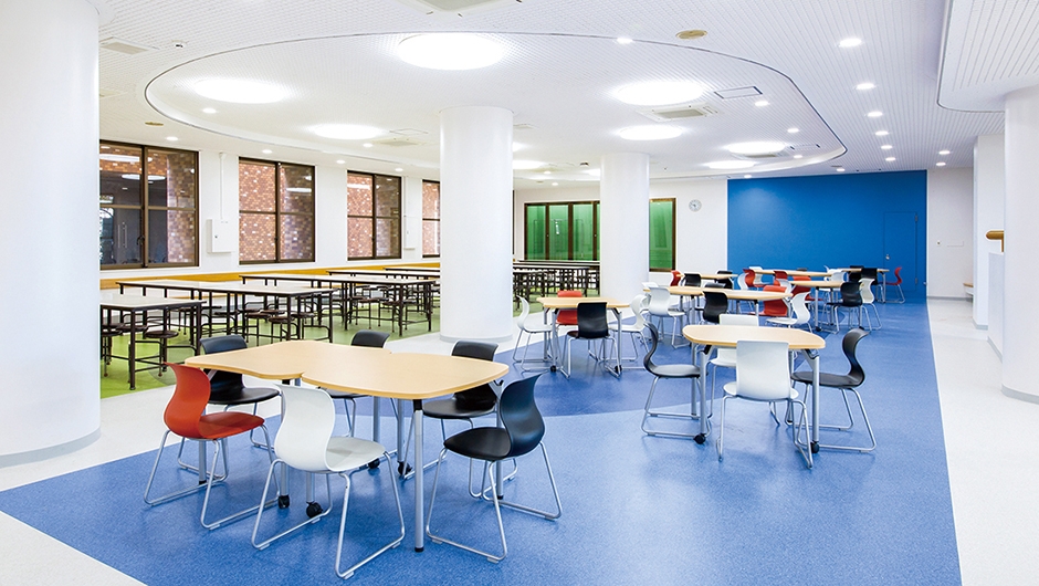この度、生徒が昼食を取ったり、部活動で使用するなど、多目的に利用されている「生徒ホール」がリニューアルされました。イス、テーブルが新調されたほか、床の貼替え、天井・壁の塗り替え、照明もLEDに変えるなど内装も一新され、明るい空間へと生まれ変わりました。
