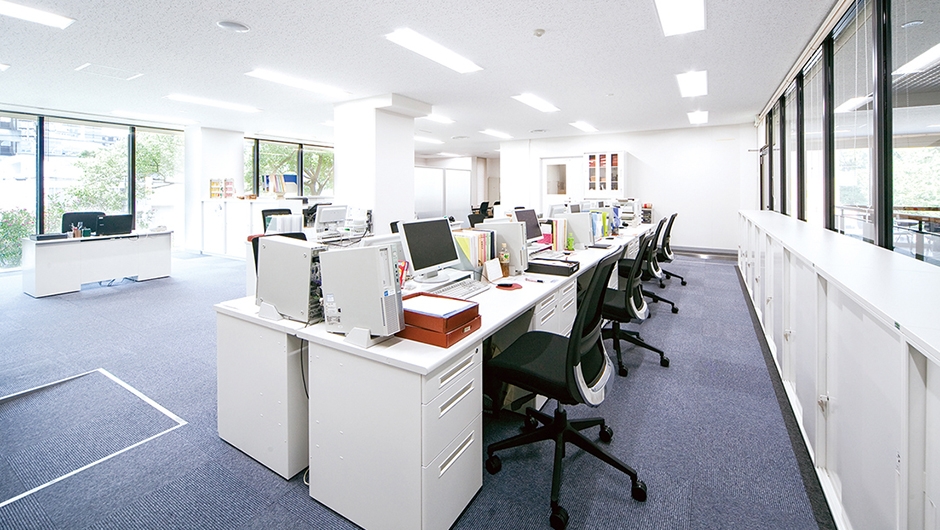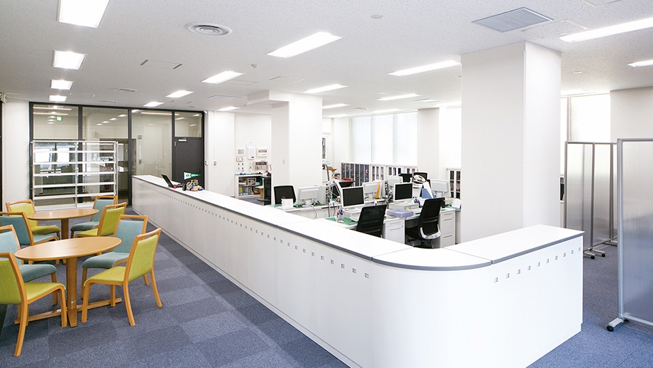 2階 入試課事務室/イス:インフィー、デスク:TY-50S、書庫、ハイカウンター、パーティション