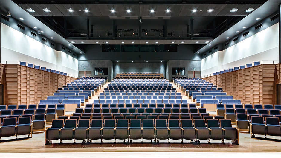 市民ホールは音楽観賞を主とした空間づくりがなされており、客席の賑わい感を演出するサイドバルコニー席や、客席中ほどには、肘掛けで仕切られていない、グループでの観賞に特化したボックス席が設けられています。