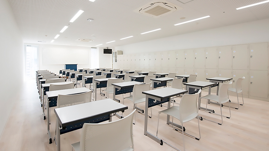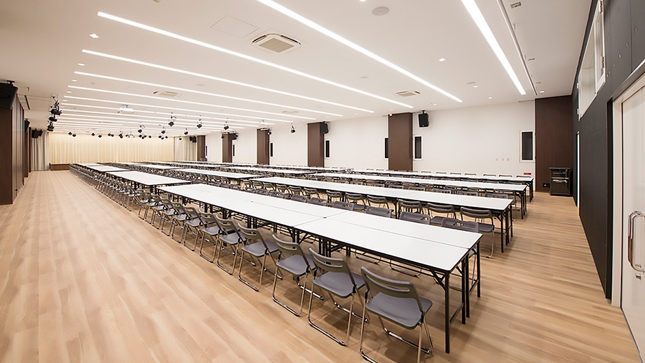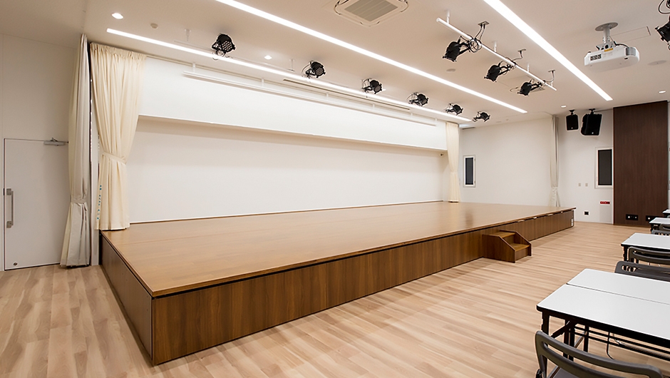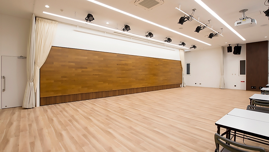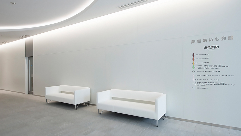 新しい美容会館は、900名収容の多目的イベントホールのほか、最新美容機器を導入した多目的実習室、多彩な講座・講習に対応したスタジオ・会議室など、最新の施設・設備が完備されています。