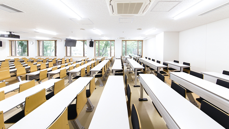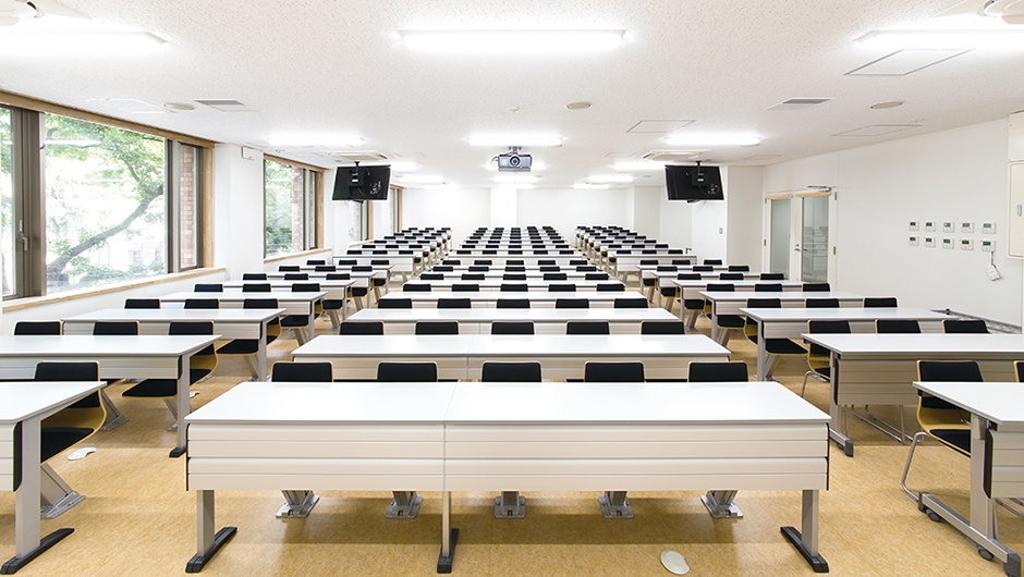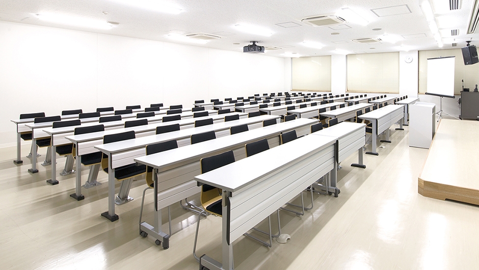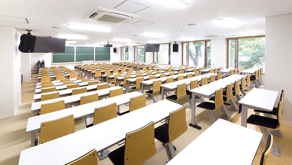 大中小5つの講義室が設置され、固定席のほかにも車椅子対応の可動式のイスやデスクを用い、バリアフリーの配慮がなされています。