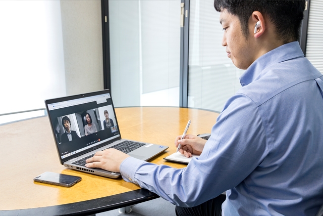 モバイルワークの広がりに伴い、ノートパソコンへ切り替えを実施し、オンラインミーティングの活用を積極的に推進しています。